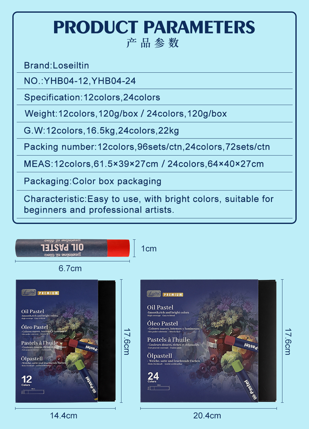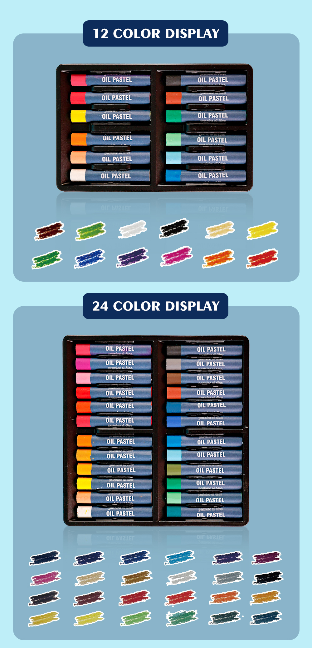 Loseiltin Premium Oil Pastel Set offers smooth, rich, and vibrant colors that blend beautifully on paper or canvas. Available in 12 or 24 colors, these high-quality oil pastels are designed for both beginners and professional artists. Packaged in a durable color box, they deliver excellent color coverage and easy application — ideal for sketching, layering, and fine art creations.