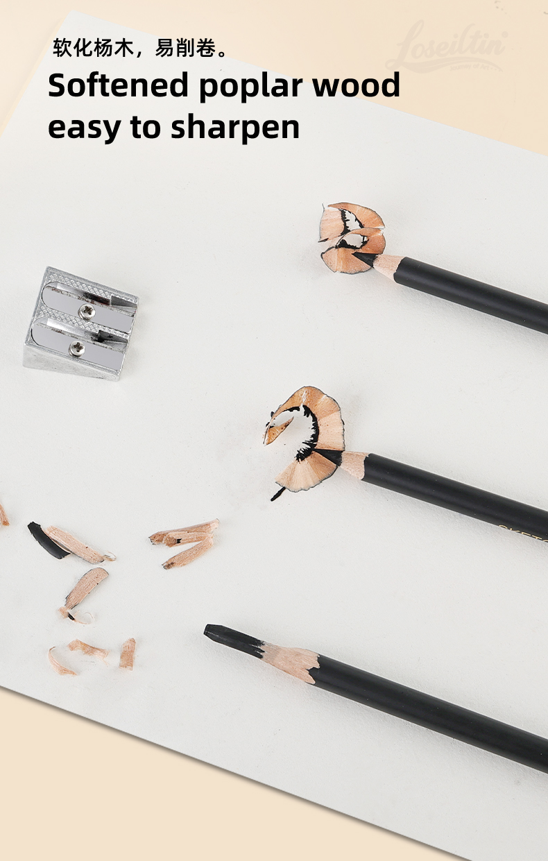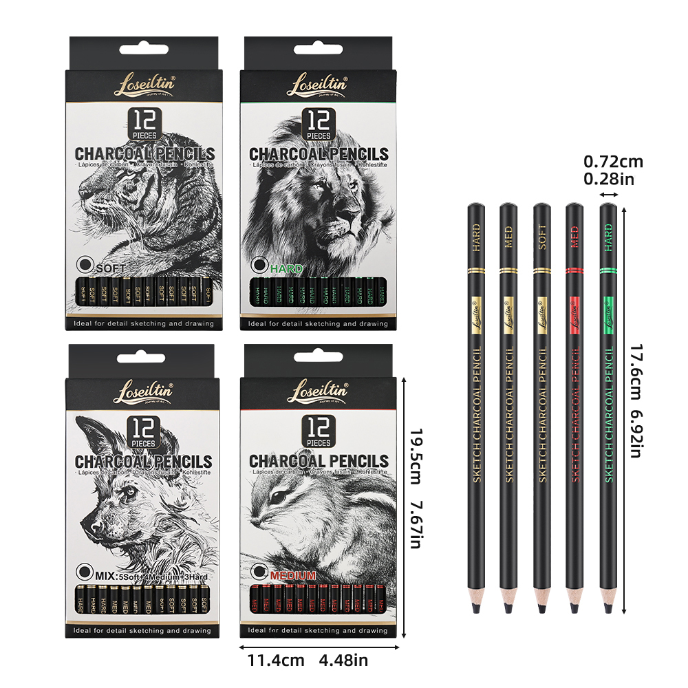 | SM032-4 | Mixed | Loseiltin | 4mm charcoal + poplar wood | 12 pcs | 109g | 120 sets | 11.4×19.5 | 17.6cm × 0.72cm | Full-range drawing set | All-level sketching |