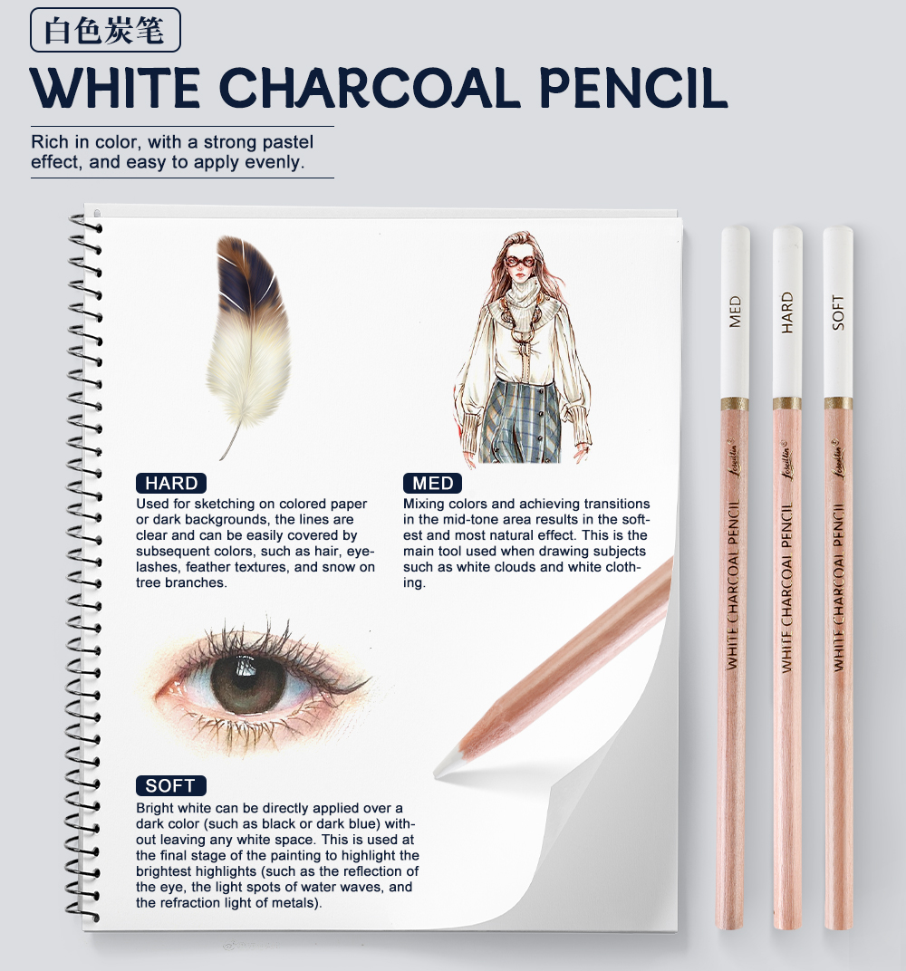 The SM-010 Colored Charcoal Pencil Set by Xin Bowen provides artists with an essential selection of 12 high-quality pencils designed for versatile sketching and drawing. This set includes a range of textures—soft, medium, and hard—along with special tones such as white, brown, and sanguine, enabling artists to create detailed shading, smooth transitions, and bold highlights.