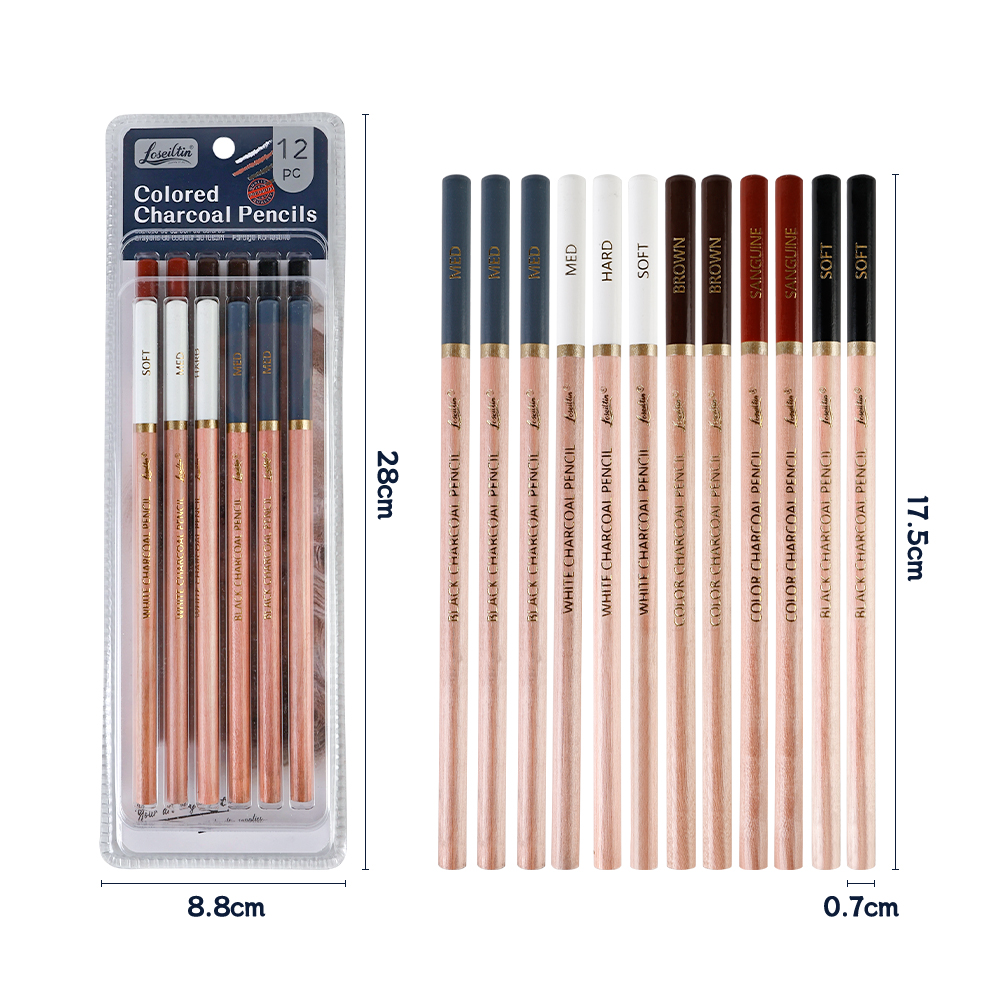 Xin Bowen 3 Hardness Colored Charcoal Pencils 12PCS Set