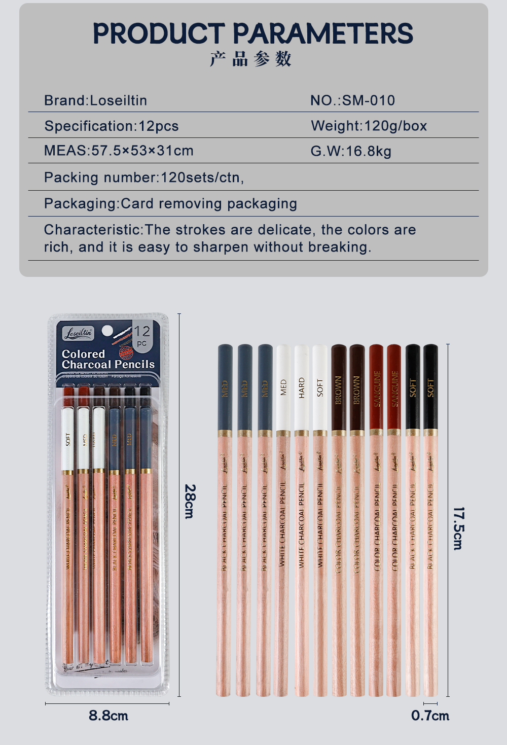 Packaged in card-holding packaging, these pencils are perfect for retail, wholesale, and art supply distributors. With 120 sets per carton, the SM-010 set is an excellent choice for bulk orders, ensuring stable supply for educational institutions, art studios, and professional retailers.