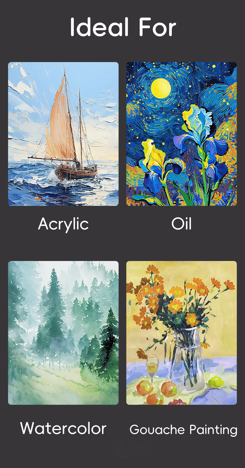 Available in several shapes—flat, round, and fan—this collection covers a wide range of painting techniques, from detailed line work to broad washes. Ideal for use with acrylic, watercolor, gouache, and oil paints, it delivers clean edges, even coverage, and excellent pigment retention.