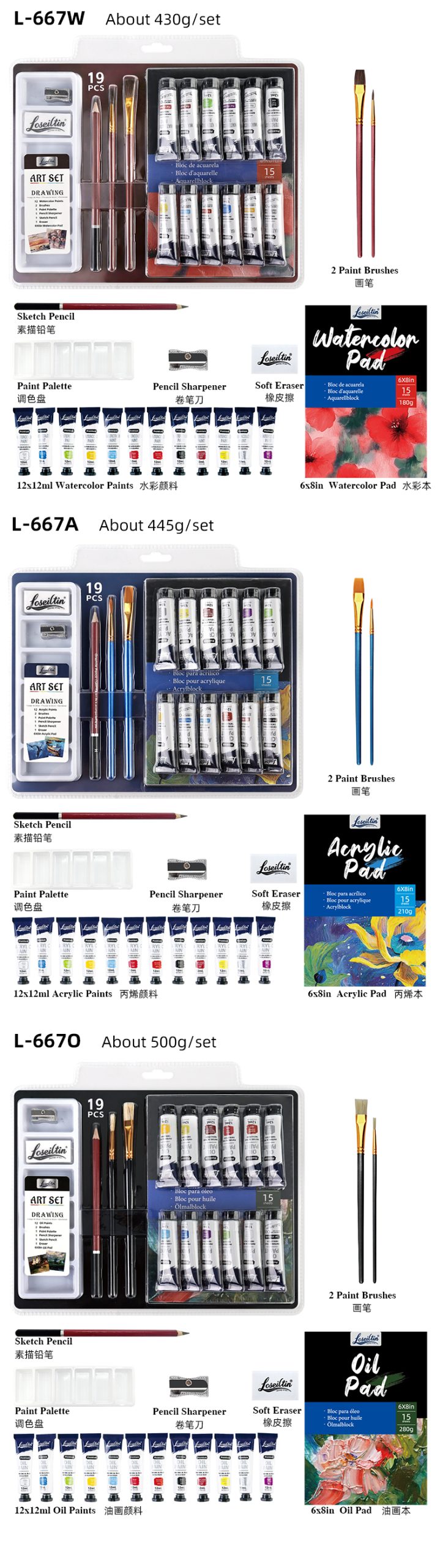 | Item Model | L-667W Watercolor Set | L-667A Acrylic Set | L-667O Oil Paint Set |
