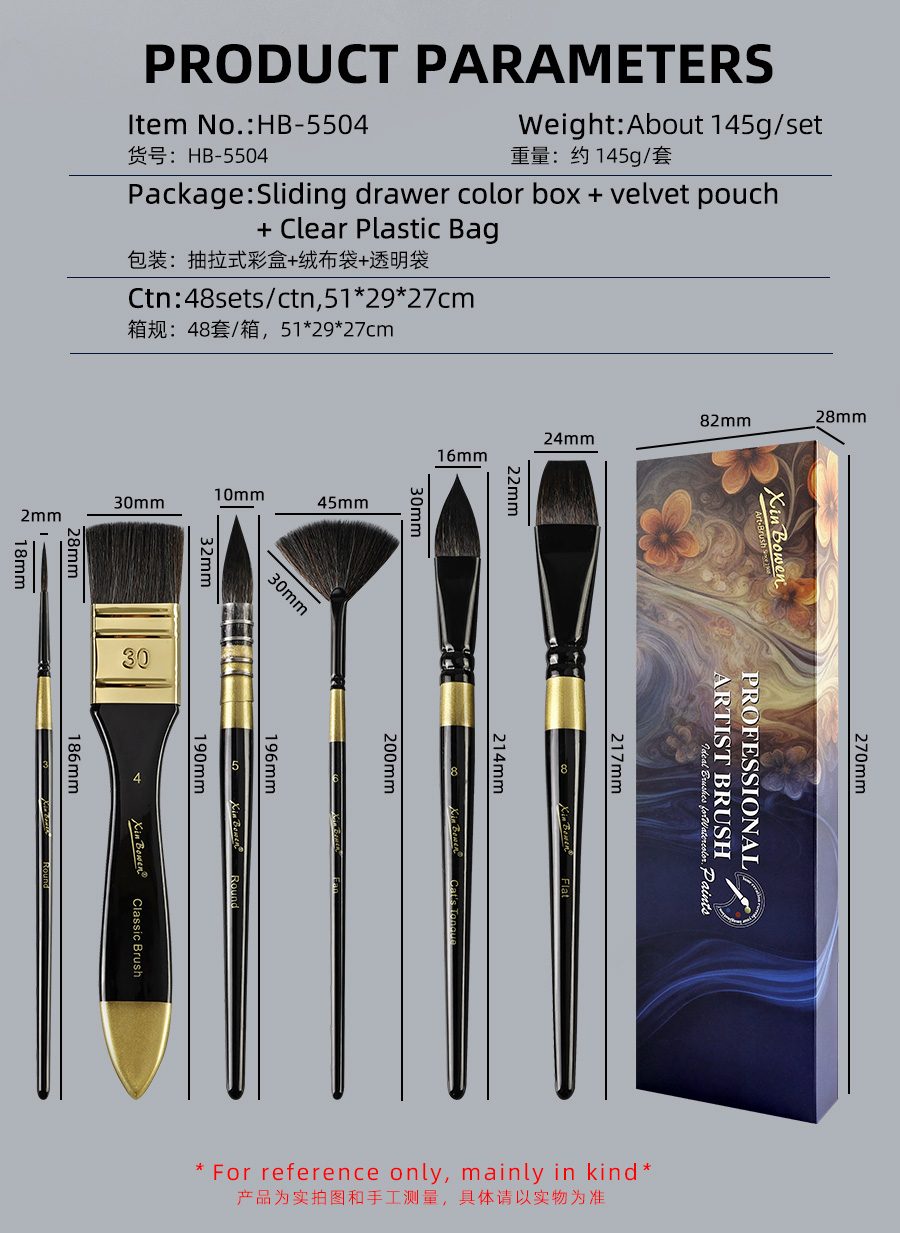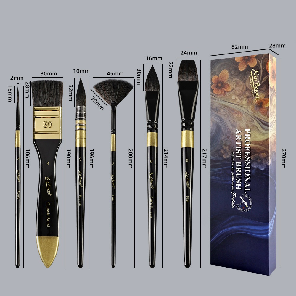 Xin Bowen Professional Watercolor Brush Set – Synthetic Squirrel Hair (6pcs)
