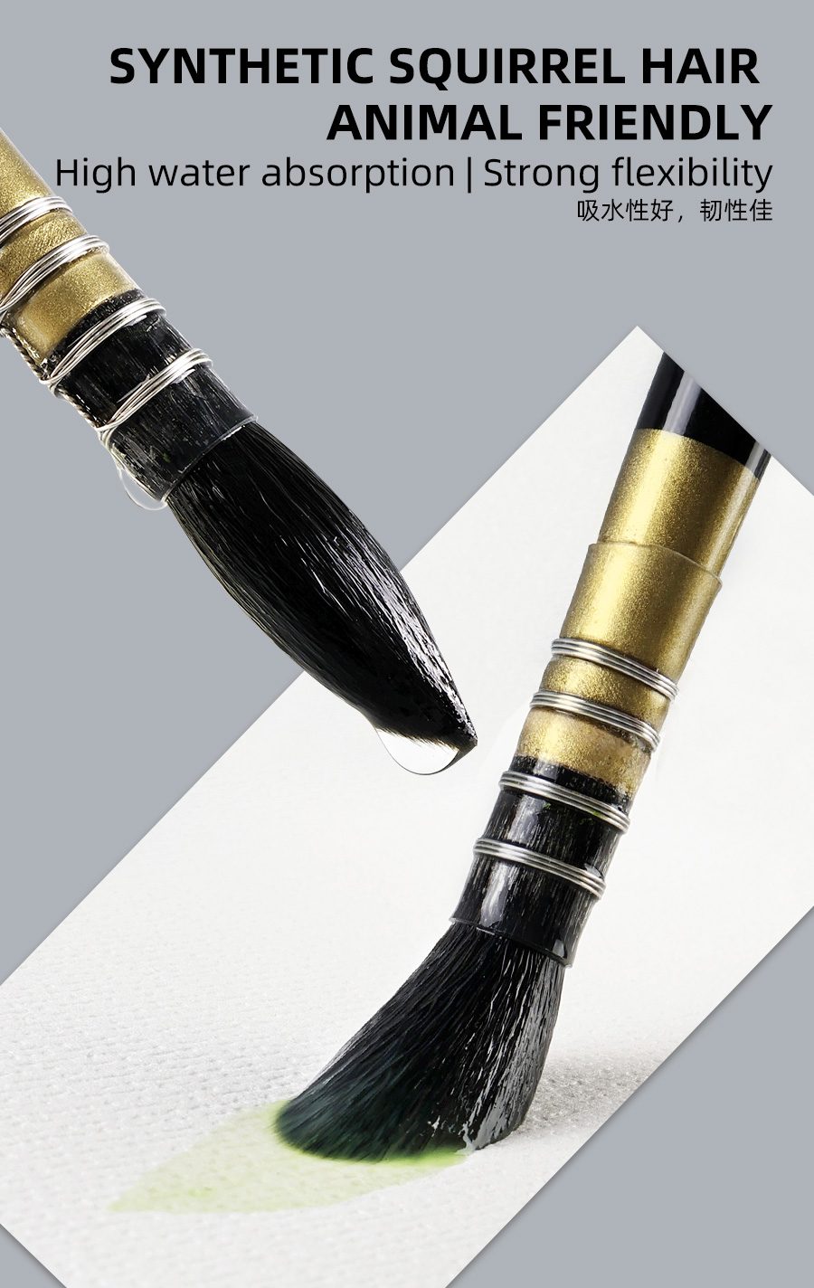 This professional watercolor brush set is designed for artists who demand precision, control, and smooth color performance. Made with premium synthetic squirrel hair, the brushes offer excellent water retention, soft touch, and durable elasticity while remaining animal-friendly.